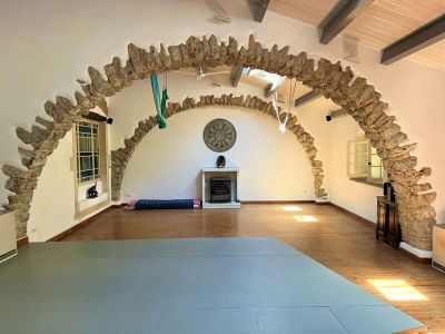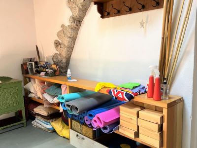 Im Veranstaltungsraum Floga (ca. 6x10 m) können Sie zwischen imposanten Mauerbögen und unter der hohen Decke Ihre privaten Yoga- und Entspannungsübungen machen. Oder Sie nehmen an einem der Seminare teil, die von Ihrer Gastgeberin organisiert werden (gegen Voranmeldung; Kontakt wird hergestellt bei Buchungswunsch). Das Angebot reicht von Yoga über Reiki bis zu Kontaktimprovisation - auch Kochkurse werden zu verschiedenen Terminen angeboten. Die dicken Natursteinwände, die während der sorgfältigen Renovierungsarbeiten soweit möglich erhalten wurden, sorgen für eine großartige Akustik und auch im heißesten Sommer für angenehm kühle Temperaturen. Wenn Sie Ihr eigenes Seminar (bis 25 Teilnehmer) hier veranstalten wollen, gibt es direkt am Seminarraum auch die Möglichkeit zu kochen sowie die entsprechende Ausstattung und Platz für die gemeinsamen Mahlzeiten. Bitte sprechen Sie uns für weitere Informationen an.