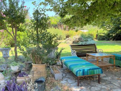 Der Garten ist liebevoll angelegt und gepflegt. Bei der Gestaltung wurde Wert darauf gelegt, die heimische Flora zu integrieren. Olivenbäume, Zypressen, Quittenbäume, Bougainvillea, Rosen, Geranien, Feigen Pfirsich- und Aprikosenbäume blühen inmitten gepflegter Rasenflächen und verbreiten ihr einzigartiges Aroma.