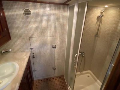 Zwei WCs gibt es an Bord. Ein kleines und ein größeres mit Waschbecken. An Deck befindet sich eine Außendusche. Die Dusche bei der Eignerkabine wird in der Regel nur genutzt, wenn ein Duschen an Deck nicht möglich ist. Sollte in einer Marina (Yachthafen) übernachtet werden, bietet es sich an, dort die sanitären Anlagen zu nutzen.
